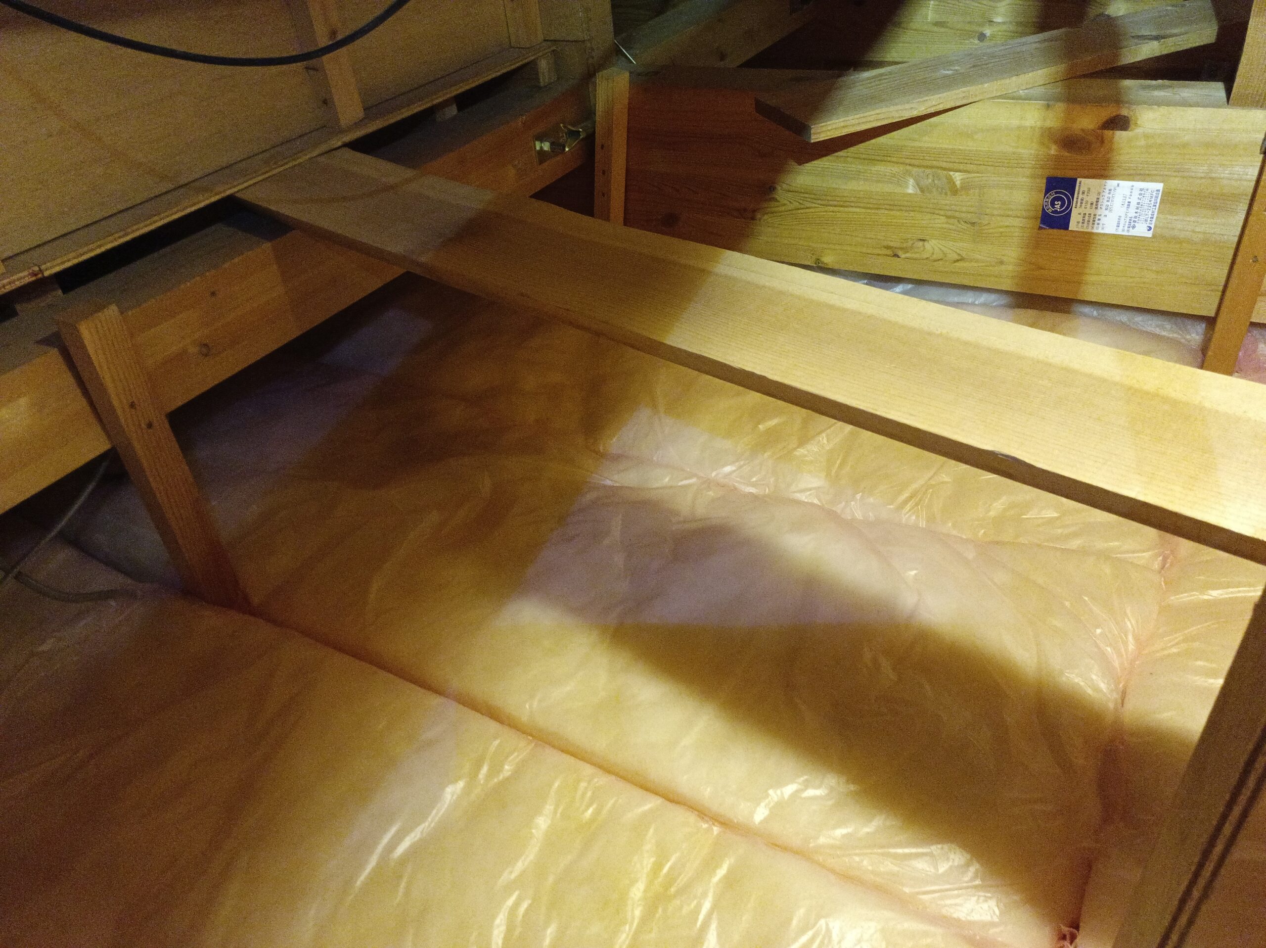 作業内容は、既存の断熱層の上にグラスウールを重ねていくというシンプルなもの。地味な作業ですが、効果は想像以上でした。