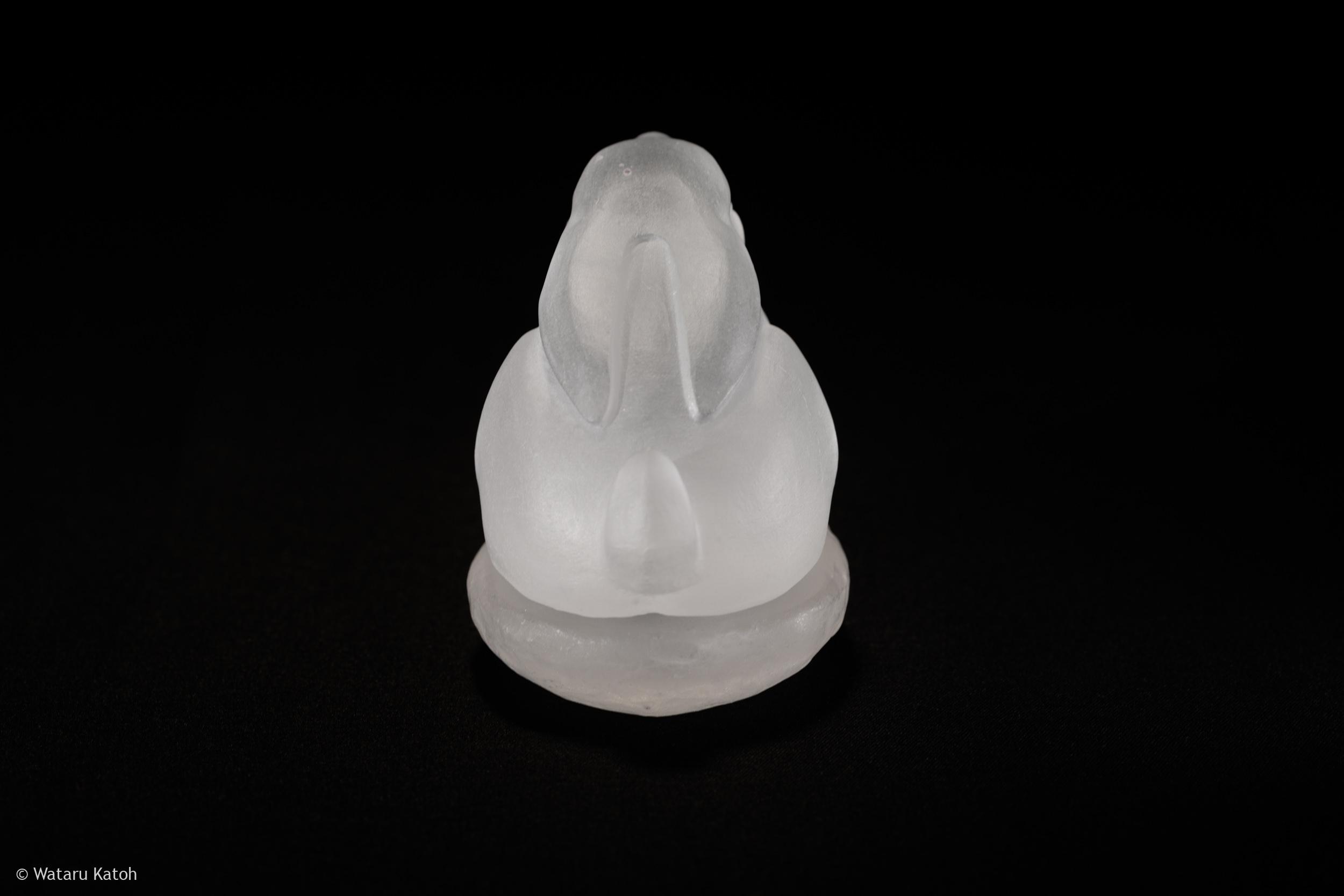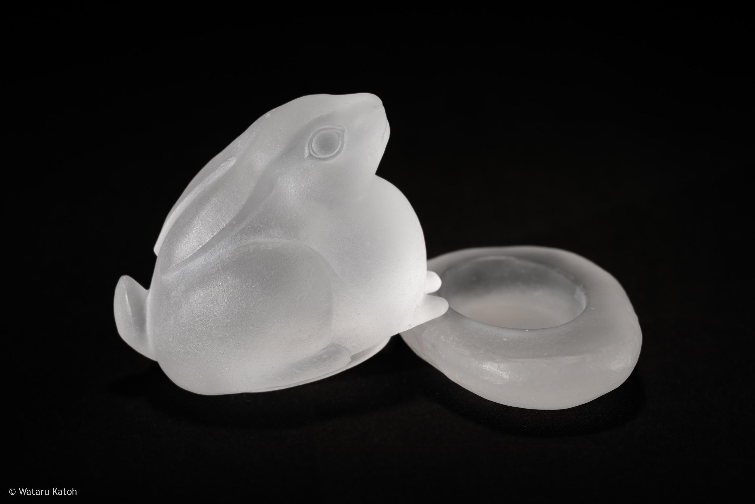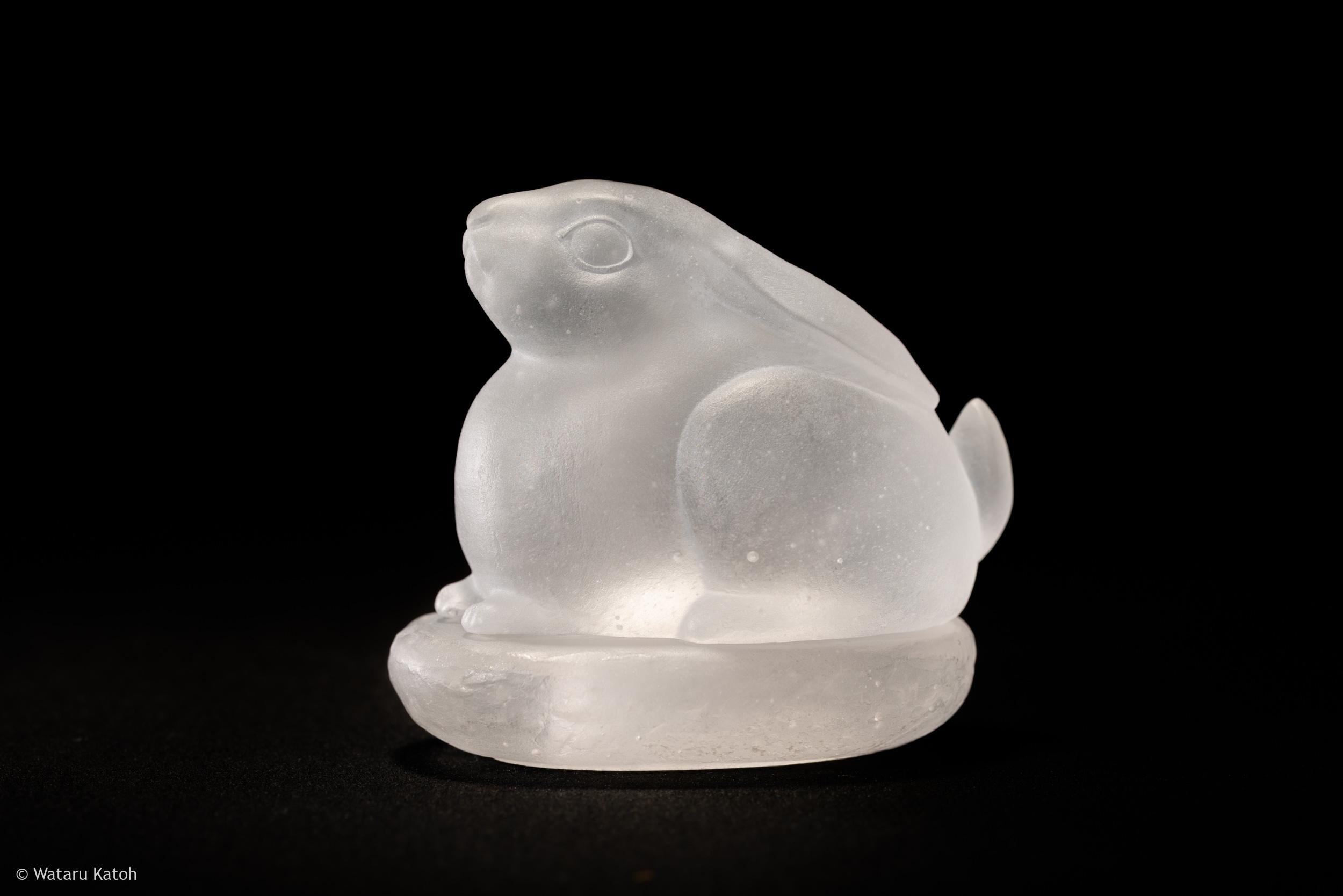 「白兎」は、古来より月や再生の象徴として親しまれてきた兎を、透きとおるガラスでかたどった作品です。
