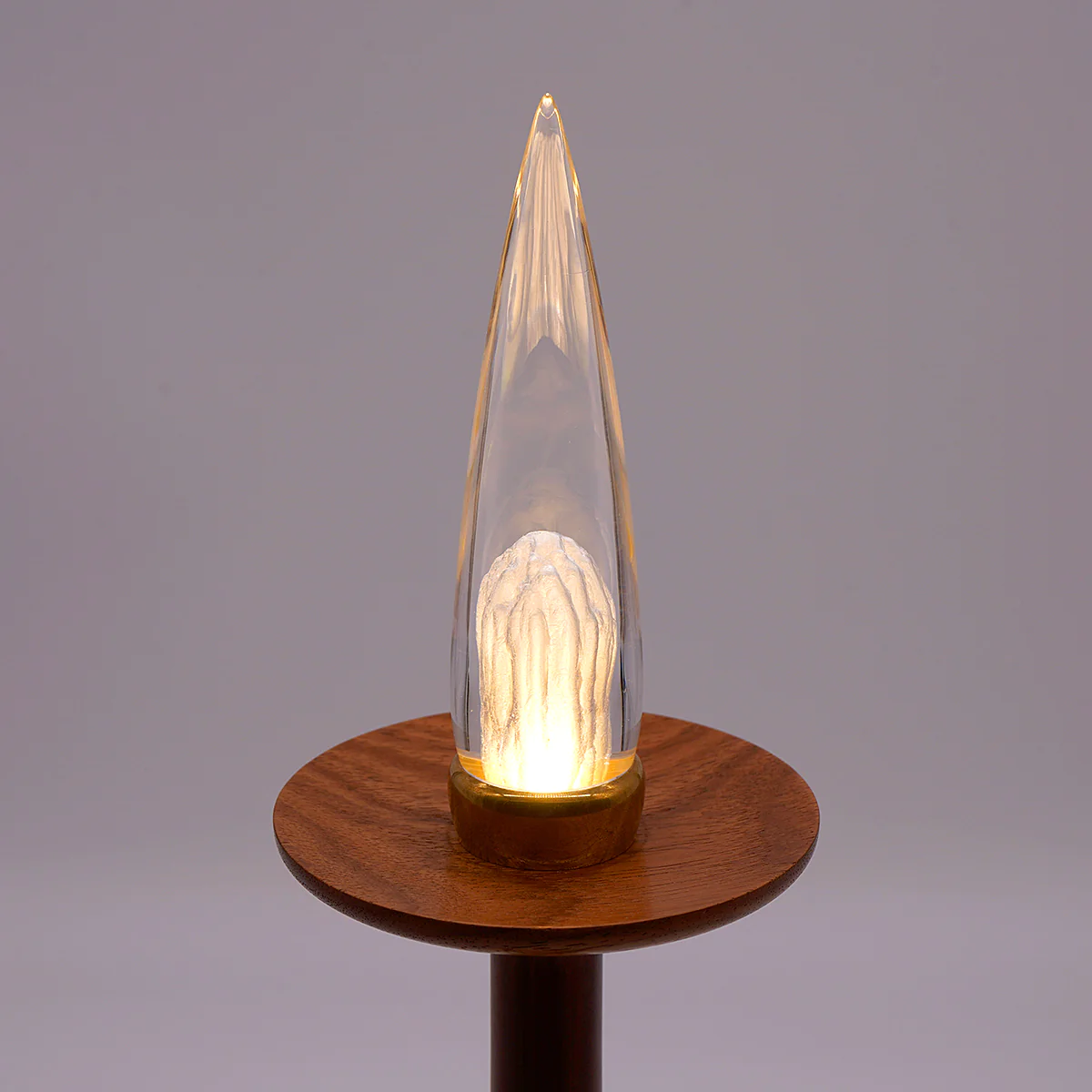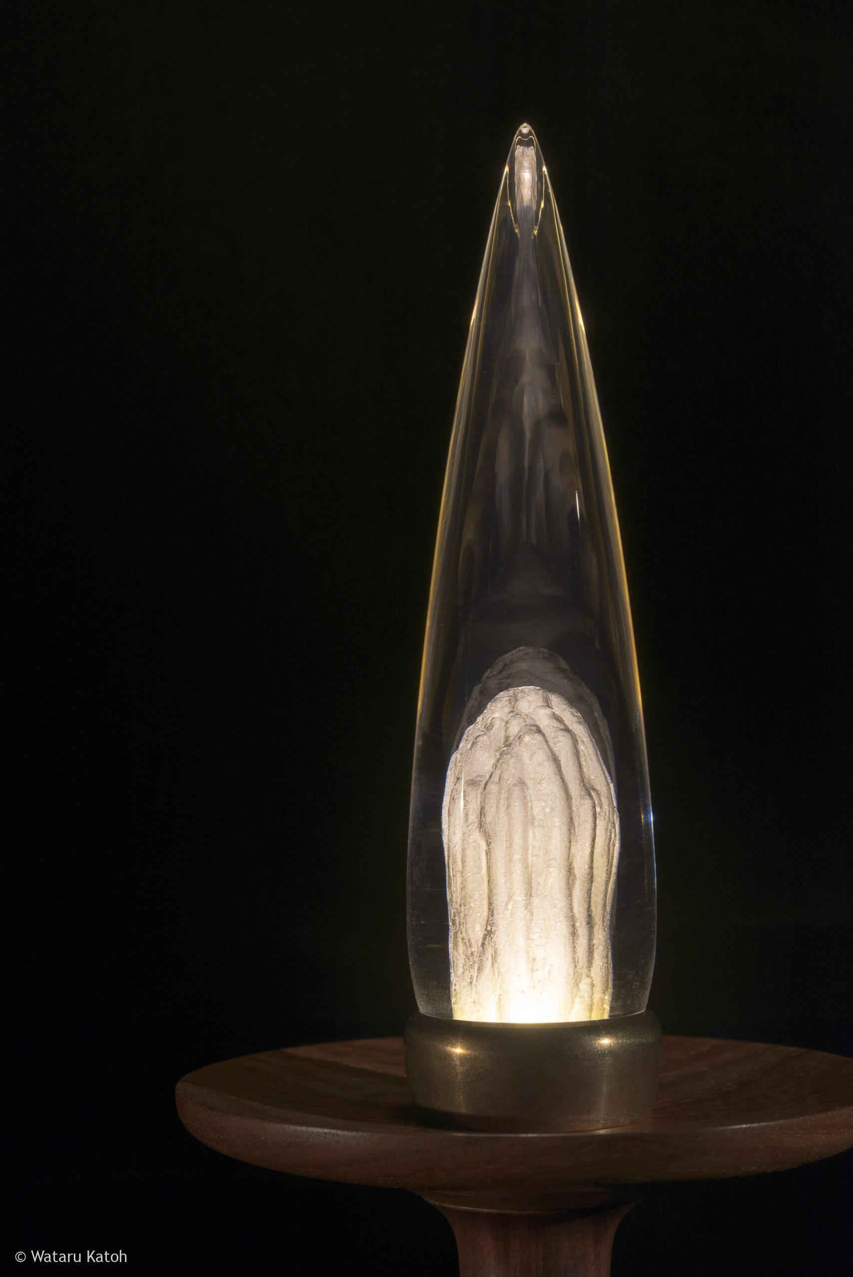 「陽炎(かげろう)」は、透明アクリルの中に光を抱き込むことで、実体のない揺らぎをかたちにした作品です。